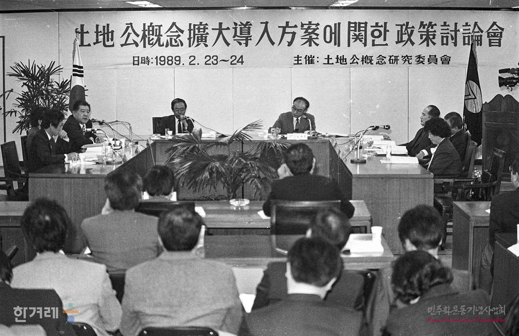 - 1989년 2월 23일 토지문제의 근복적인 해결책으로 공개념적 토지제도를 연구해온 토지공개념연구위원회는 국토개발원에서 토지소유제한, 토지거래 제한, 개발이익 환수, 기업의 토지투기 억제대책 등을 주제로 정책토론회를 하고 있다.