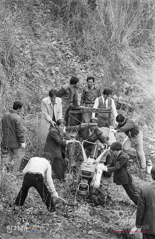 - 1989년 2월 25일 김재규 사망 9년이 지난 경기도 광주시 외곽 공원묘지 김재규 무덤에 유신철폐운동에 앞장섰던 지역 재야인사들의 모인인 광주 전남 송죽회 회원들이 김재규장군 추모비라고 적힌 묘비를 세우고 있다.