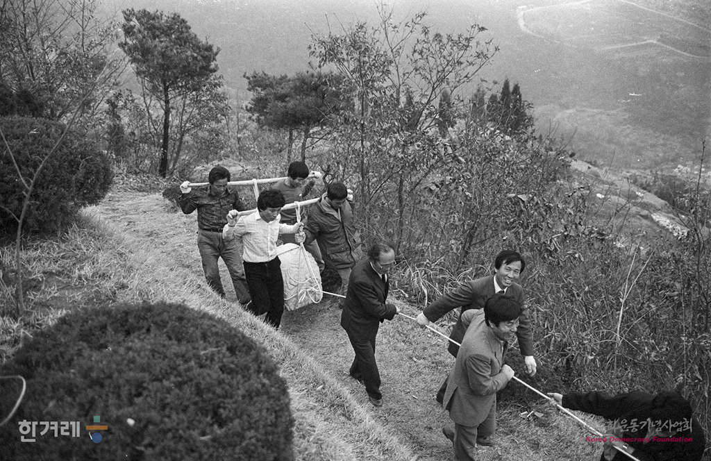 - 1989년 2월 25일 김재규 사망 9년이 지난 경기도 광주시 외곽 공원묘지 김재규 무덤에 유신철폐운동에 앞장섰던 지역 재야인사들의 모인인 광주 전남 송죽회 회원들이 김재규장군 추모비라고 적힌 묘비를 세우고 있다.