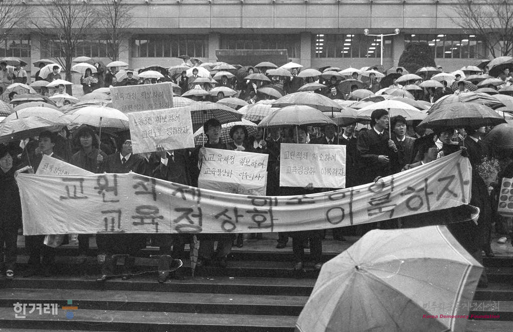 - 1989년 2울 25일 서울대 졸업생과 학부모들이 총학생회와 졸업준비위원회가 교내 아크로폴리스 광장에서 졸마련한 졸업생 한마당을 가진 뒤 등록금 동결과 총학생회의 졸업식 참여, 총학장 직전제, 교원임용보장을 요구하며 대운동장으로 행진 졸업식에 참석하고 있다.