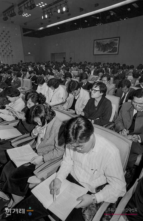 - 1989년 2월 25일 3.1운동 70돌을 기념해 한겨레신문사 주최로 서울 프레스센터 국제회의장에서 열린 학술심포지움 ‘민족해방운동사에서의 3.1운동 평가’에서 3.1운동 평가를 둘러싼 주요한 현안을 주제발표 및 토론을 하고 있다. 한겨레신문은 한국역사연구회와 역사문제연구소 소속 소장학자들과 지난 1년여 걸쳐 공동작업으로 연구했다.