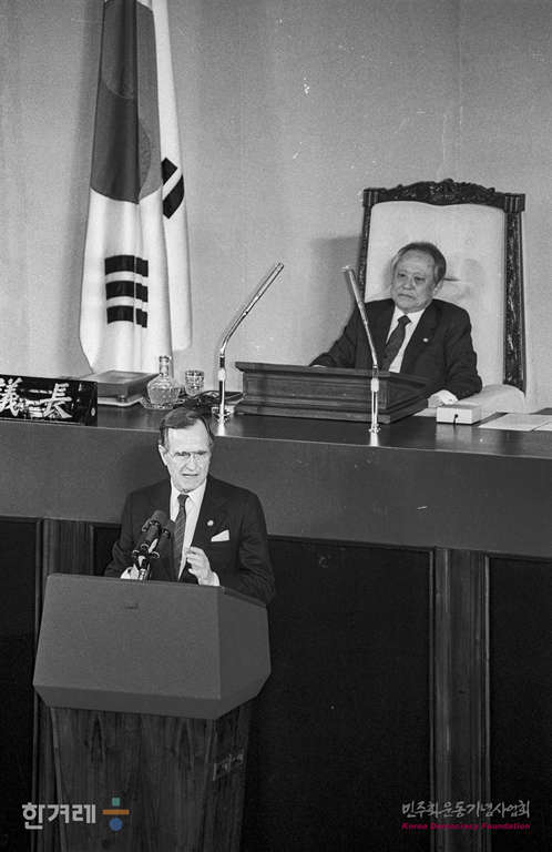 - 1989년 2월 27일 한미정상회담을 마친 부시 미 대통령이 국회를 방문해 2한국의 민주발전, 경제발전에 대한 경의 표시 및 한미간 기존 우호관계 증진 등을 내용으로 국회연설을 하고 있다.