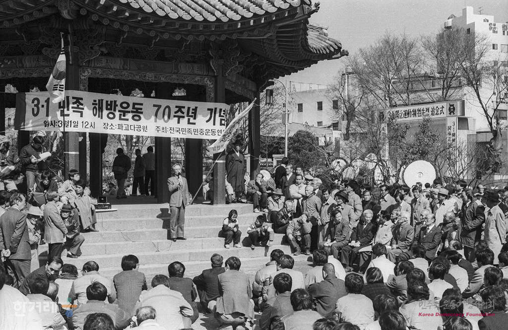 - 1989년 3월 1일 낮 12시 3.1절 70주년을 맞아 전국민족민주운동연합은 시민 7백여명이 참석한 가운데 서울 종로구 종로3가 파고다공원에서 3.1민족해방운동 70주년 기념식을 갖고 있다. 광복회도 이날 오후 2시 같은 장소에서 3.1독립운동 희생선열 합동추념식을 가졌다.