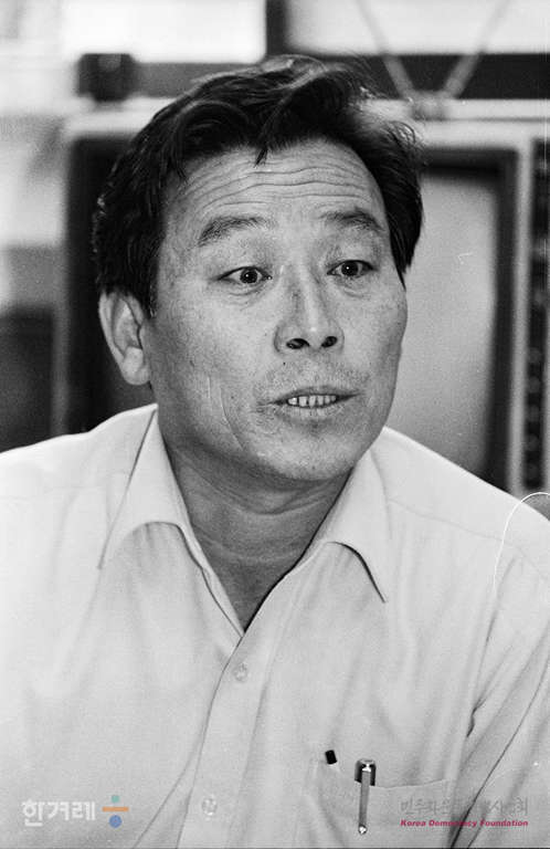 - 1989년 3월 2일 지난 1일 농민운동단체의 통합조직인 전국농민운동연합(전농련) 의장으로 선출된 윤정석 위원장이 한겨레신문과 인터뷰를 하고 있다.