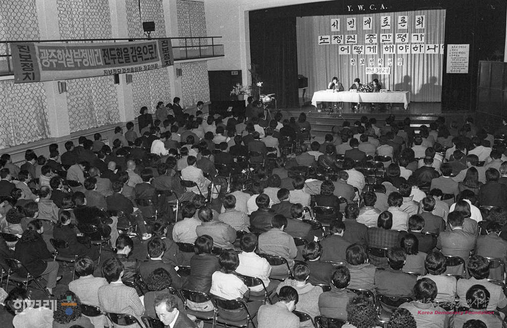 - 1989년 3월 2일 오후6시 진보정치연합은 서울 YWCA강당에서 노태우 정권 중간평가 어떻게 해야하나라는 주제로 시민대토론회를 하고 있다. 이날 토론회에는 노무현의원(민주), 정태윤 진정연 공동대표, 고성국 고대강사가 주제발표를 했다.