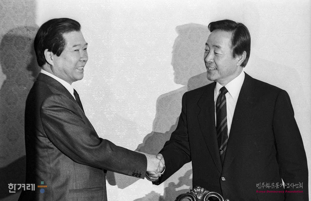 - 1989년 3월 4일 여권이 중간평가 조기실시 방침에 대한 애응방안을 포함하여 정국현안에 대한 야권의 공동대응책을 마련하기 위해 김대중 평민당 총재, 김영삼 민주당 총재, 김종필 공화당 총개가 국회 귀빈식당에서 회담을 갖고 있다.