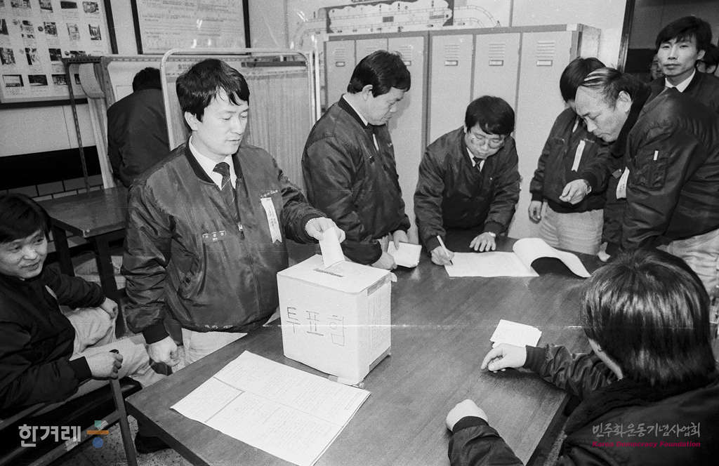 - 1989년 3월 7일 서울지하철 노동쟁의가 서울시 간부들과 노조간부들 사잉에 이틀째 협상으로 현안문제에 대한 양쪽 의견이 접근하여 노조확대간부회의를 긴급 소집, 파업 지속여부를 묻는 투표가 실시돼 조합원들이 투표를 하고 있다.