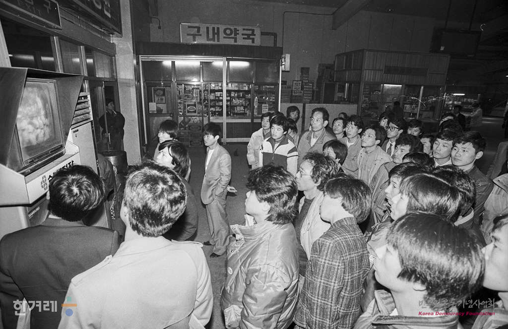 - 1989년 3월 8일 밤 KBS01TV의 다큐멘터리 5공화국 제2부 광주는 말한가 방영된 영등포역에서 대합실에 설치된 텔레비전앞에 모여 시청을 하고 있다.