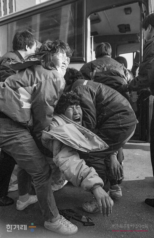 - 1989년 3월 8일 오전 9시 50분 정주영 명에회장 면담을 요구하며 지난달 28일부터 서울 종로구 계동 현대 본사앞에서 텐트 농성중이던 현대중공업 노동자와 가족 등 3백여명이 정사복 경찰 5개중대 8백여명을 동원 강제해산하고 있다.