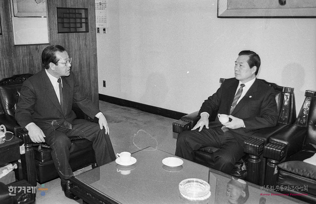 - 1989년 3월 8일 오전 9시 김종필 총재가 국회 공화당 총재실을 찾아온 김대중 평민당총재를 만나 4자회담을 제안하고 있다