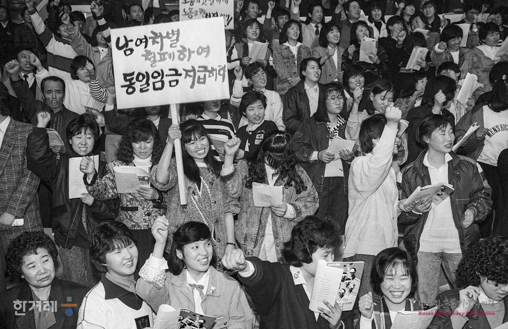 - 1989년 3월 10일 오전 10시 한국노총 소속 노동자들이 서울 장충체육관에 모여 노총 창립기념일인 3월 10일을 임투승리를 위한 결의대회의 날로 선언하고 무노동무임금 분쇄와 평균 26.8%임금인상 관철을 결의하고 있다. 이날 결의대회에 정치권의 김영삼 김종필 이종찬의원이 각 정당을 대표로 참여했다.