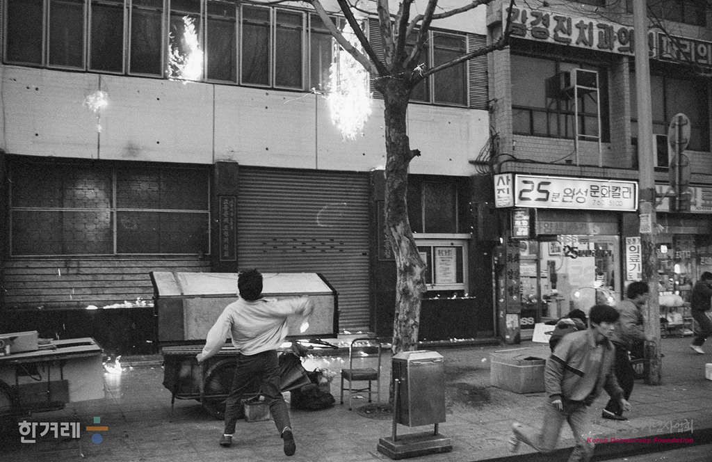 - 1989년 3월 10일 오후6시30분 서총련 소속 대학생 40여명이 현대테러 자행하는 정주영을 구속하라는 구호를 외치며 서울 종로3가 서울지방노동청에 화염병 40여개를 던지며 시위를 벌이고 있다.
