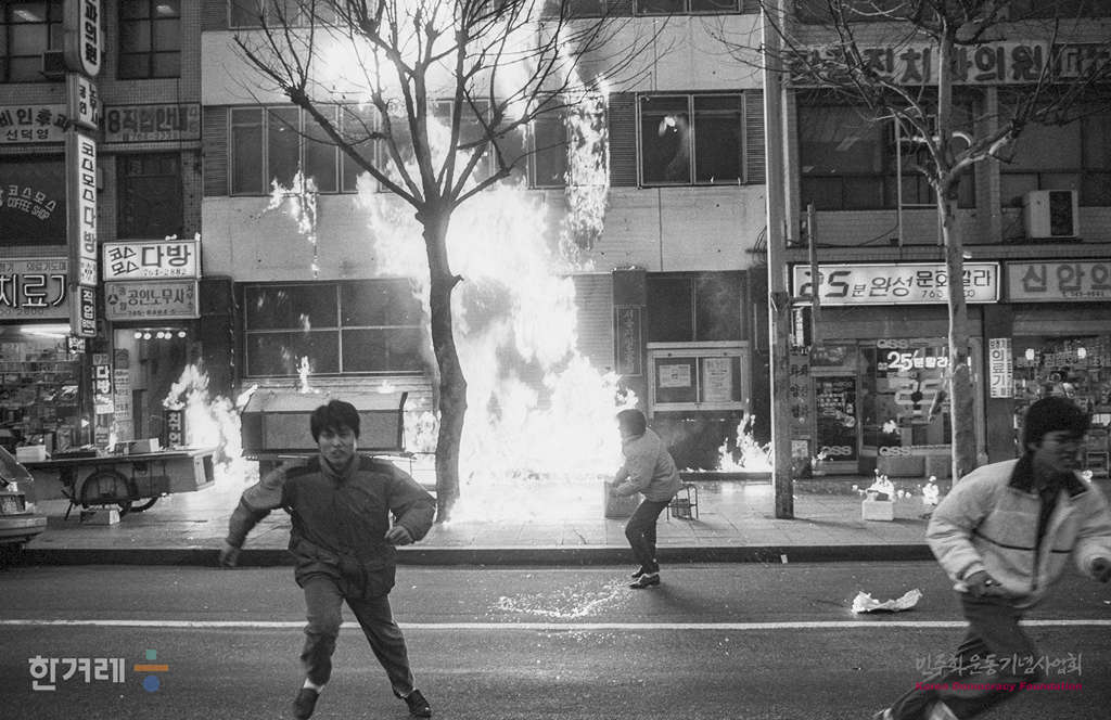 - 1989년 3월 10일 오후6시30분 서총련 소속 대학생 40여명이 현대테러 자행하는 정주영을 구속하라는 구호를 외치며 서울 종로3가 서울지방노동청에 화염병 40여개를 던지며 시위를 벌이고 있다.