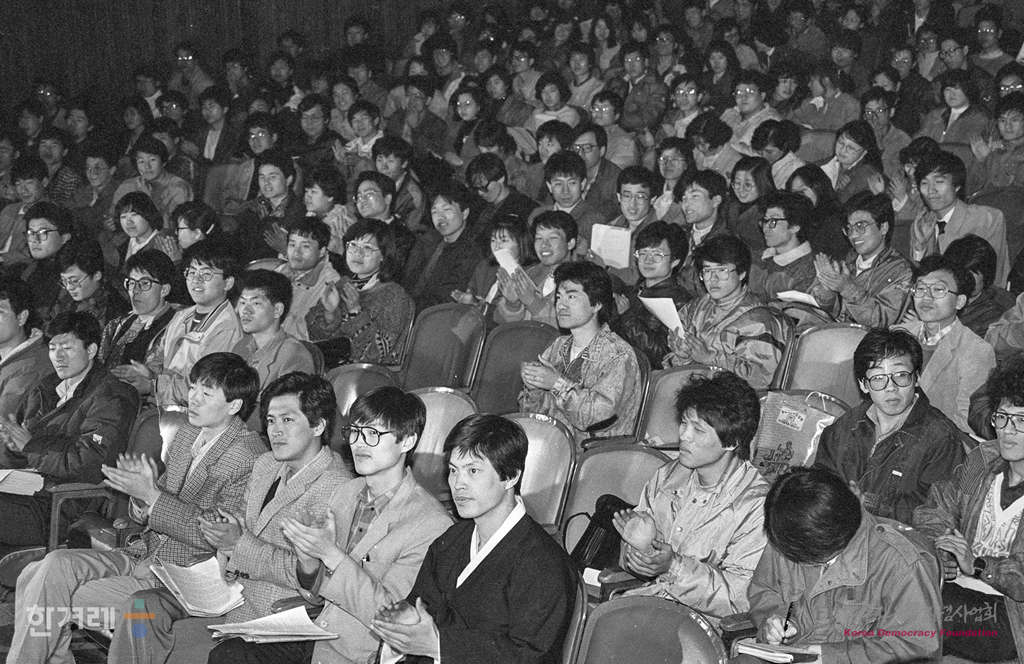 - 1989년 3월 11일 오후 2시 30분 오는 7월 평양에서 열리는 제13차 세계청년학생축전 참가를 위한 공청회가 서울 서강대 강당에서 학생 시민 5백여명이 참석한 가운데 전대협을 비롯해 남북대학생교류추진위원회, 평민당, 전민련, 전국청년단체대표자협의회 등의 대표들이 참석해 기조발제를 하고 있다.