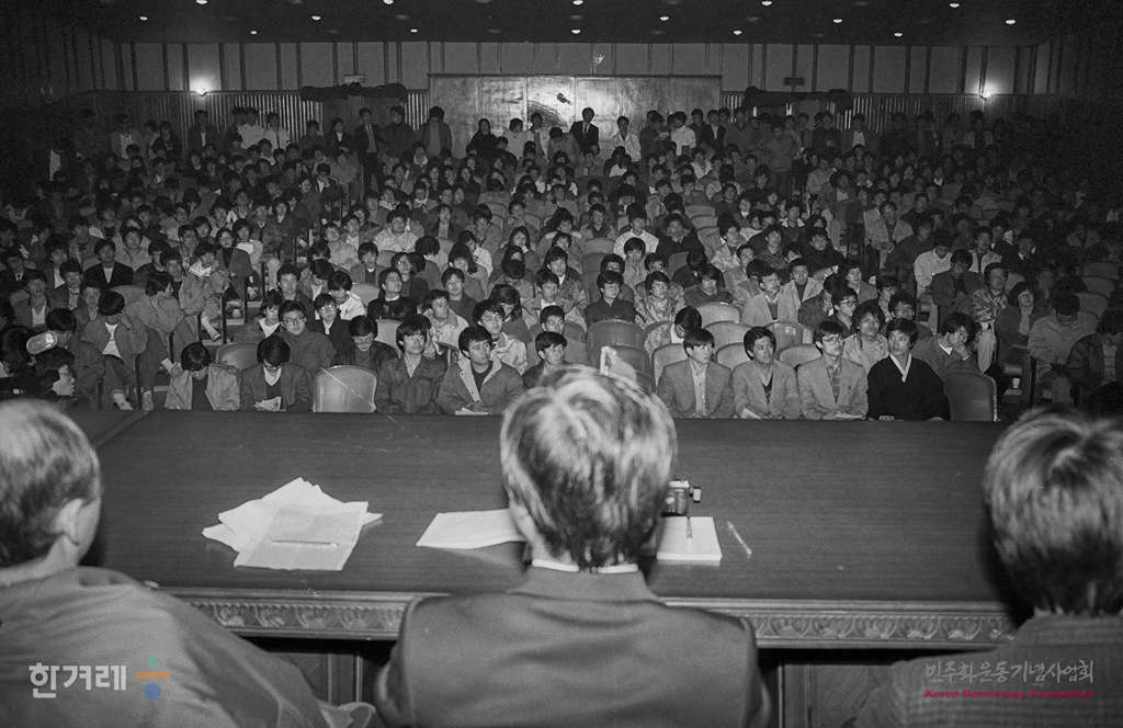 - 1989년 3월 11일 오후 2시 30분 오는 7월 평양에서 열리는 제13차 세계청년학생축전 참가를 위한 공청회가 서울 서강대 강당에서 학생 시민 5백여명이 참석한 가운데 전대협을 비롯해 남북대학생교류추진위원회, 평민당, 전민련, 전국청년단체대표자협의회 등의 대표들이 참석해 기조발제를 하고 있다.