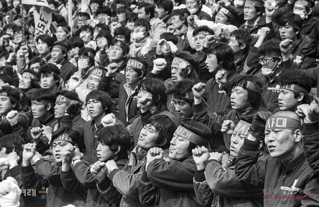 - 1989년 3월 12일 오후 2시 현대재벌 폭력테러규탄 국민대회가 서울 연세대 노천극장에서 열려 전국 노동법개정 및 임금인상 투쟁본부 전민련 전대협 등 3개 단체 주최로 노동자 학생 등 1만여명이 참석한 가운데 열리고 있다.