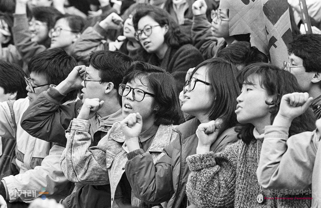 - 1989년 3월 12일 오후 2시 현대재벌 폭력테러규탄 국민대회가 서울 연세대 노천극장에서 열려 전국 노동법개정 및 임금인상 투쟁본부 전민련 전대협 등 3개 단체 주최로 노동자 학생 등 1만여명이 참석한 가운데 열리고 있다.