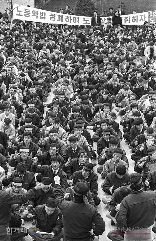 - 1989년 3월 13일 오전 11시 서울지하철공사 2천여명의 노조원들이 서울 성동구 용답동 군자기지안에서 노태우 고건 망언규탄 및 노조탄압분쇄 파업투쟁결의대회를 갖고 파업강행방침을 재확인하고 있다.