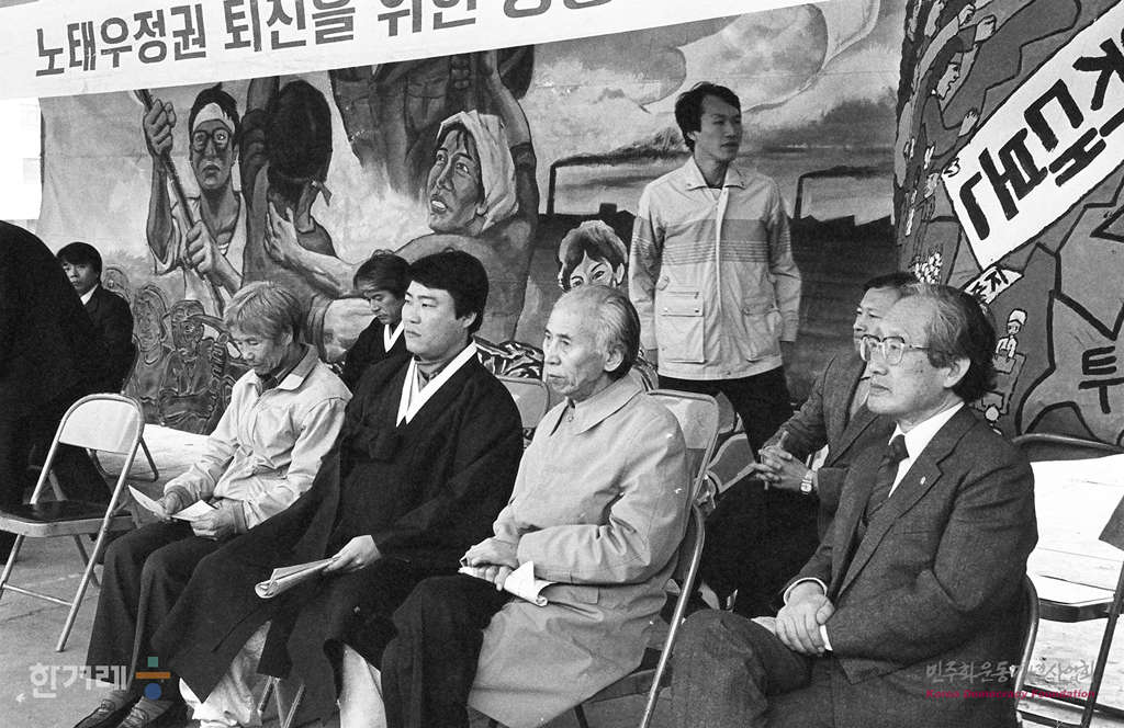- 1989년 3월 19일 오후3시 전민련을 중심으로 결성된 ’노태우정권 퇴진 공동투쟁본부‘(워원장 이부영전민련의장)는 한양대 노천극장에서 시민 학생 노동자 6천여명이 참석한 가운데 노태우정권 불신임투쟁 선포대회를 갖고 있다.
