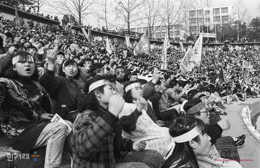 - 1989년 3월 19일 오후3시 전민련을 중심으로 결성된 ’노태우정권 퇴진 공동투쟁본부‘(워원장 이부영전민련의장)는 한양대 노천극장에서 시민 학생 노동자 6천여명이 참석한 가운데 노태우정권 불신임투쟁 선포대회를 갖고 있다.