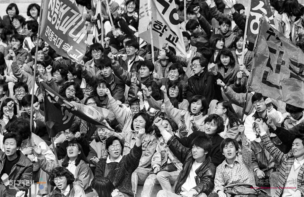 - 1989년 3월 19일 오후3시 전민련을 중심으로 결성된 ’노태우정권 퇴진 공동투쟁본부‘(워원장 이부영전민련의장)는 한양대 노천극장에서 시민 학생 노동자 6천여명이 참석한 가운데 노태우정권 불신임투쟁 선포대회를 갖고 있다.