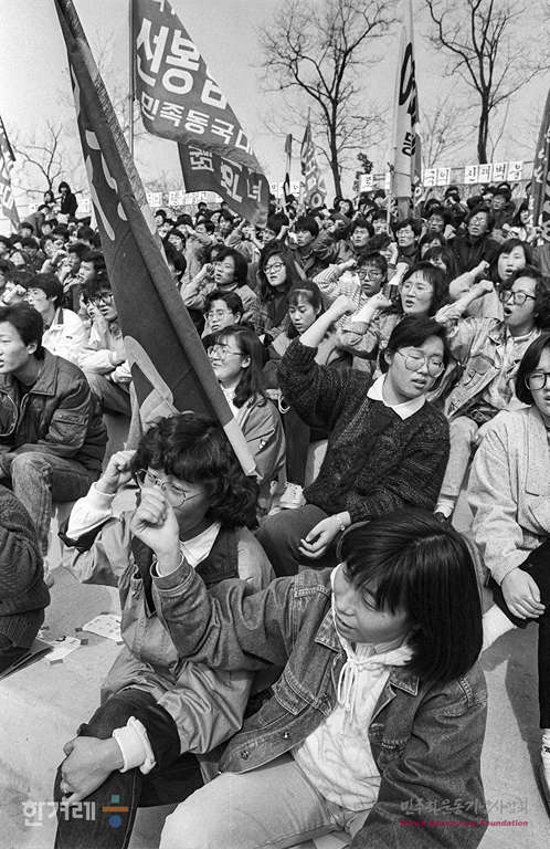 - 1989년 3월 19일 오후3시 전민련을 중심으로 결성된 ’노태우정권 퇴진 공동투쟁본부‘(워원장 이부영전민련의장)는 한양대 노천극장에서 시민 학생 노동자 6천여명이 참석한 가운데 노태우정권 불신임투쟁 선포대회를 갖고 있다.