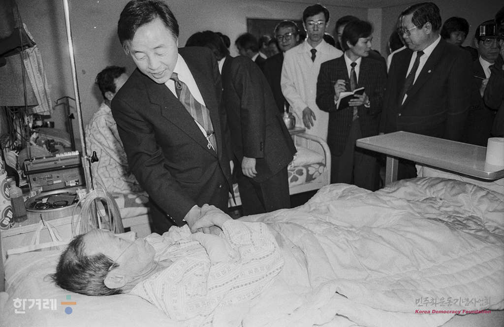 - 1989년 3월 14일 강원지역에서 유세중인 김영삼 민주당 총재는 장성규폐센터에서 진폐증 환자들을 위문하고 있다.