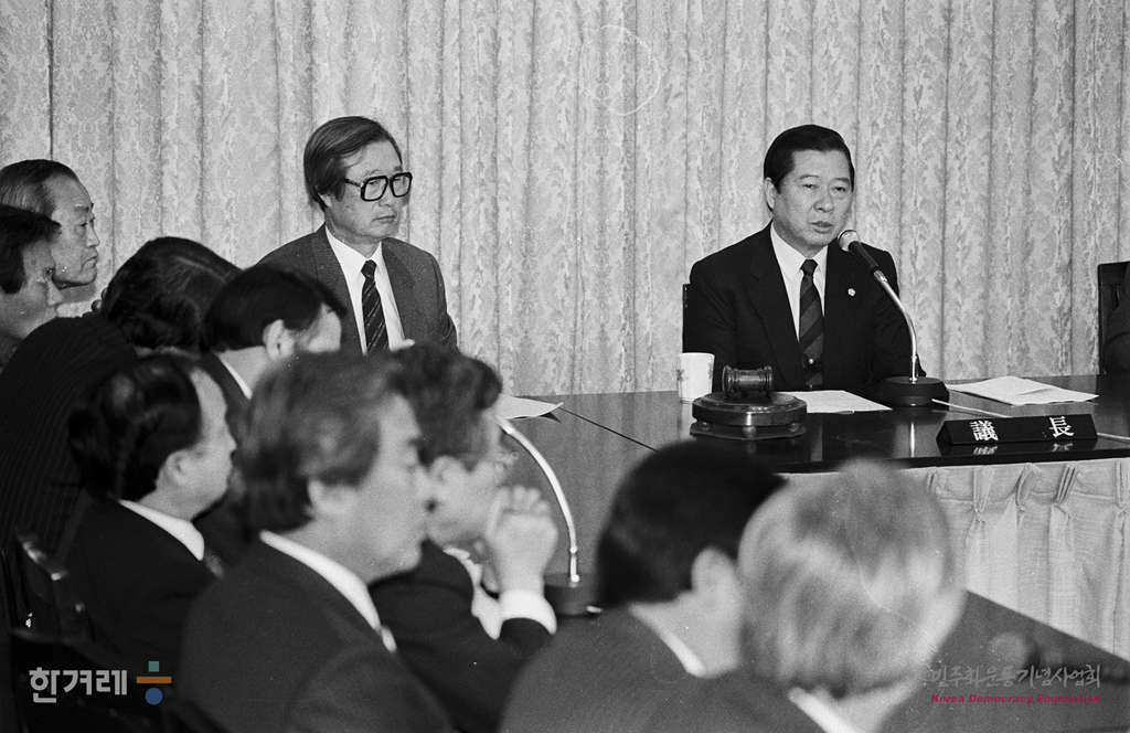 - 1989년 3월 20일 노태우대통령의 현시점에서 중간평가를 실시하지 않겠다는 담화를 발표함에 따라 평민당 중앙당사에서 김대중 총재를 비롯한 간부들이 대책회의를 하고 있다.