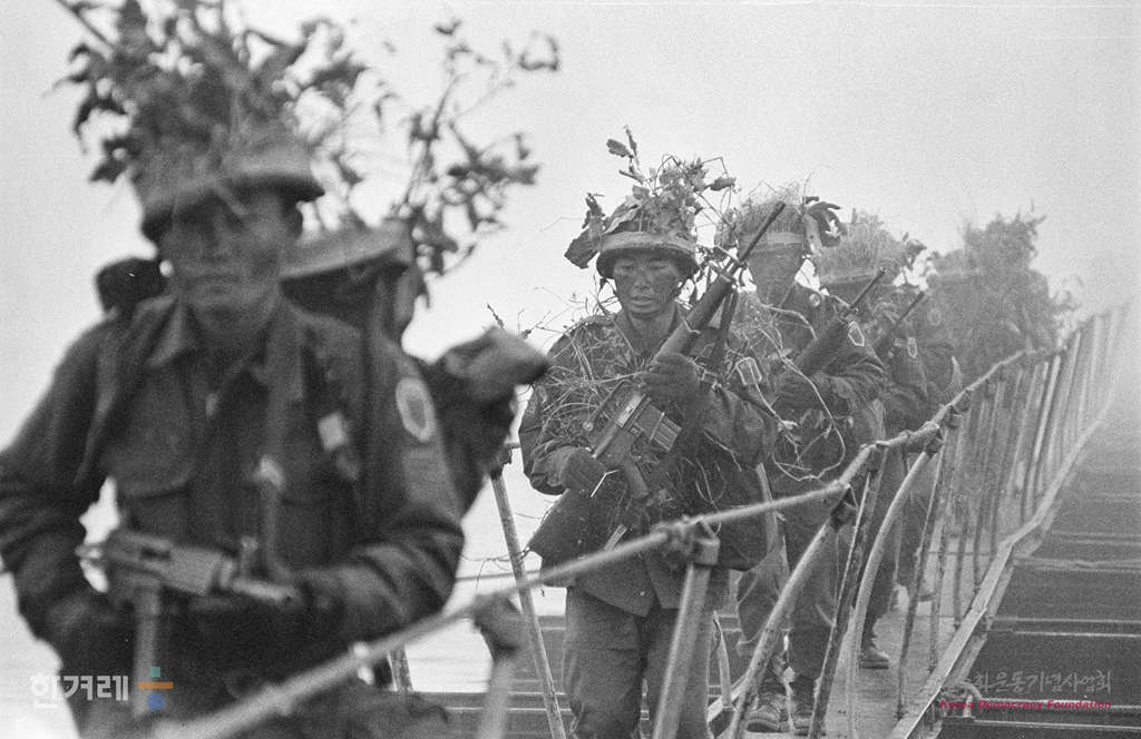- 1989년 3월 21일 지난 14일부터 시작된 한미연합 합동훈련인 팀스프리트 훈련은 한미연합상륙훈련을 시작으로 경기도 여주 및 이천과 강원도 횡성 및 원주지역으로 긴장지대인 DMZ으로부터 차량으로 한시간반이상 걸리는 후방지역에서 실시됐다. 사진은 여주인근에서 도하훈련사진이다.