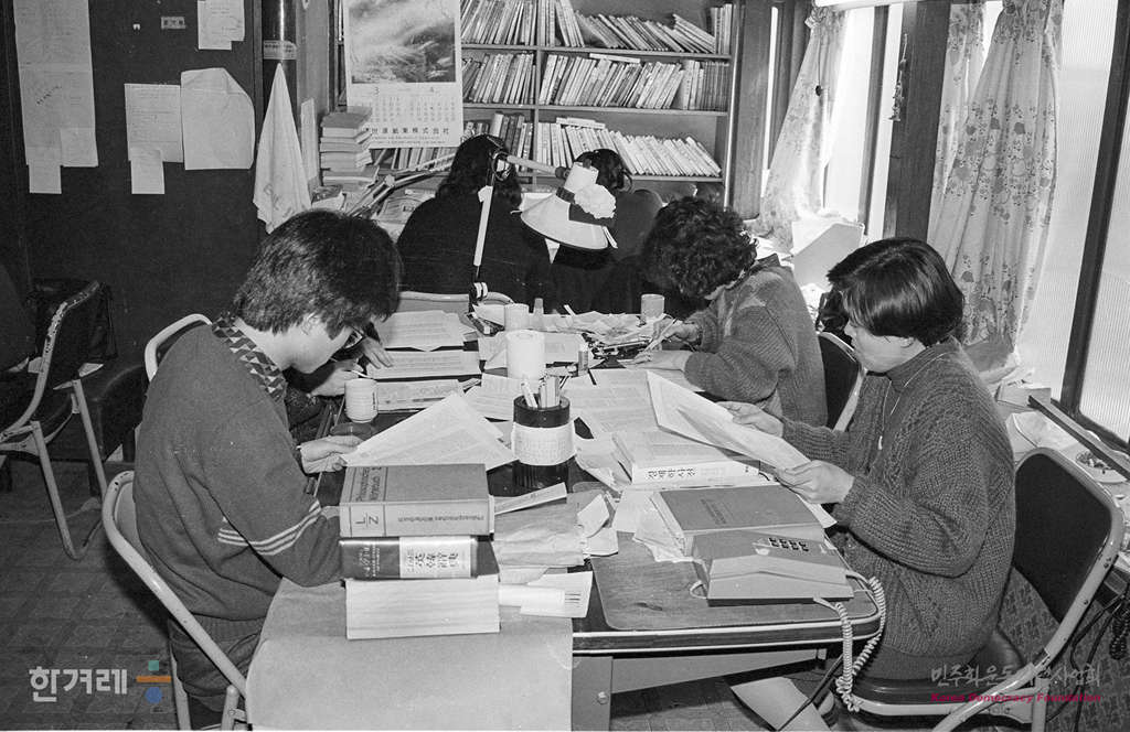 - 1988년 3월 22일. 86년부터 주5일 근무제를 실시한 동녘출판사 모습. 이 움직임은 최근 출판사들 사이에 새바람으로 번져가고 있다.