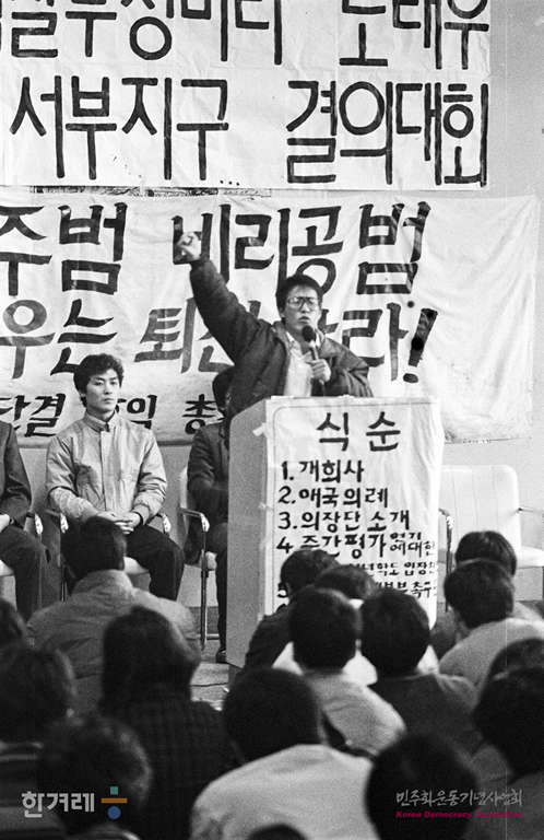 - 1989년 3월 24일 연세대, 서강대 등 서총련 서부지구 소속 대학생들이 서울 홍익대학교에서 ‘노태우퇴진을 위한 투쟁본부 발족식’을 갖고 정부의 ‘좌경폭력세력 철결’을 위한 공권력발동 방침에 반발하고 있다.