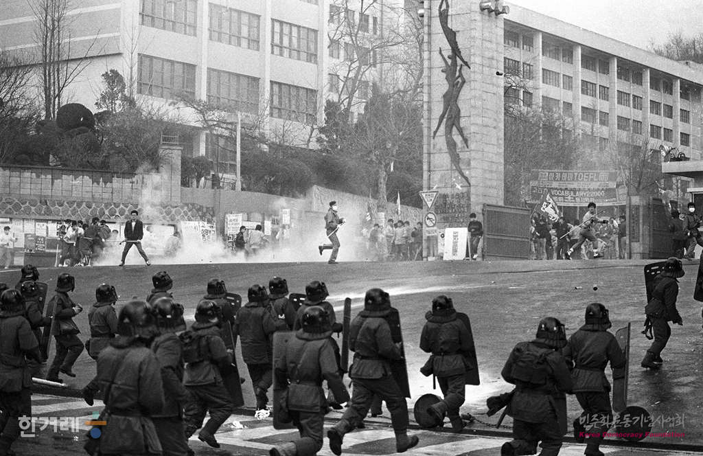 - 1989년 3월 24일 연세대, 서강대 등 서총련 서부지구 소속 대학생들이 서울 홍익대학교에서 ‘노태우퇴진을 위한 투쟁본부 발족식’을 갖고 정부의 ‘좌경폭력세력 철결’을 위한 공권력발동 방침에 반발하고 있다.