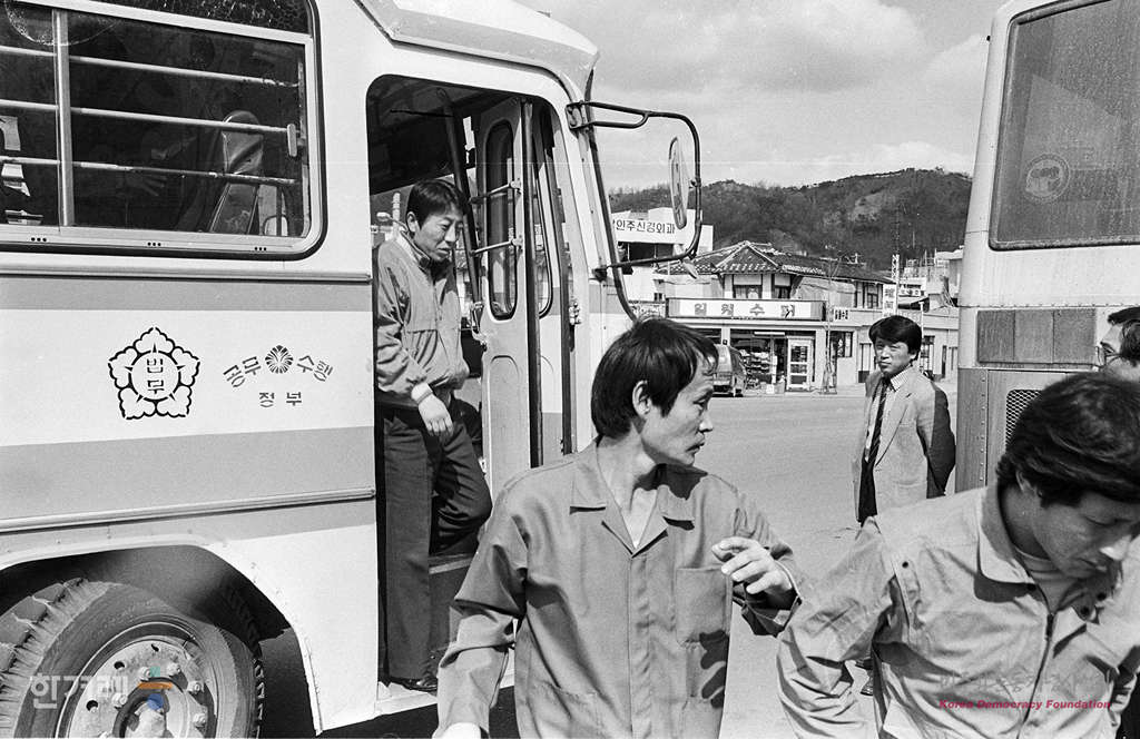 - 1989년 3월 25일 개정된 사회보호법 적용범위에서 제외되는 피감호자 2백21명이 청송보호감호소에서 플려나고 있다. 풀려난 피감호자들은 감호소에서 마련한 버스로 안동시내로 이동했다.