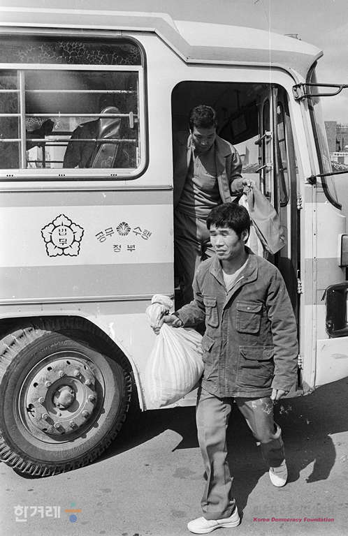 - 1989년 3월 25일 개정된 사회보호법 적용범위에서 제외되는 피감호자 2백21명이 청송보호감호소에서 플려나고 있다. 풀려난 피감호자들은 감호소에서 마련한 버스로 안동시내로 이동했다.