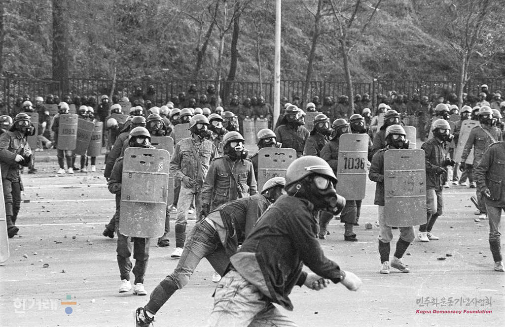 - 1989년 3월 25일 오후2시 서울지역 총학생회연합 소속 대학생들이 서울 연세대 도서관앞 민주광장에서 ‘광주학살, 5공비리 주범 노정권 퇴진을 위한 청년학도 발대식 및 노동운동 탄압 결의대회’를 갖고 노정권 퇴진운동에 적극 나설 것을 결의하고 있다.