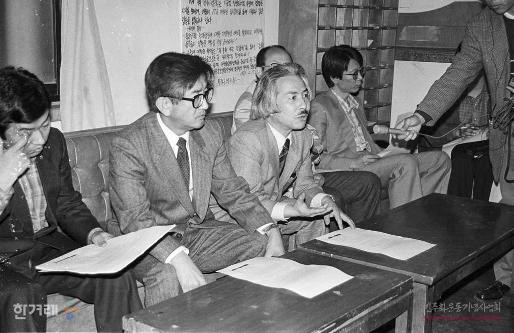 - 1989년 3월 28일 오후4시 고려대 최장집 교수 등 교수 11명은 교내 대학원 건물 1층 교수회의실에서 기자회견을 갖고 이준범 총장의 사최를 촉구하고 있다.