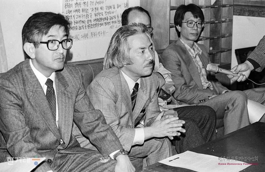 - 1989년 3월 28일 오후4시 고려대 최장집 교수 등 교수 11명은 교내 대학원 건물 1층 교수회의실에서 기자회견을 갖고 이준범 총장의 사최를 촉구하고 있다.