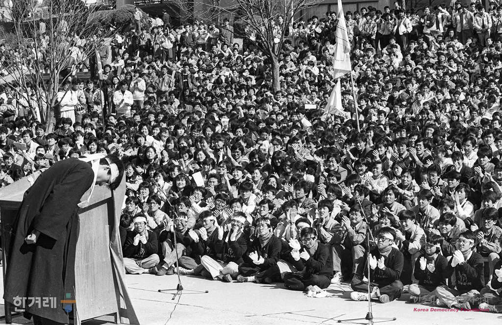 - 1989년 3월 29일 서울대 민주광장에서 서울대 총학생회 발대식을 갖고 있다. 총학생회장이 된 문광명씨는 서울지역총학생회연합 2기 부의장 겸 전국대학생대표자협의회에서 부의장을 맡고 있다.