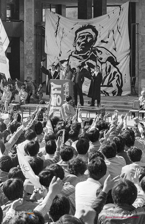 - 1989년 3월 29일 서울대 민주광장에서 서울대 총학생회 발대식을 갖고 있다. 총학생회장이 된 문광명씨는 서울지역총학생회연합 2기 부의장 겸 전국대학생대표자협의회에서 부의장을 맡고 있다.