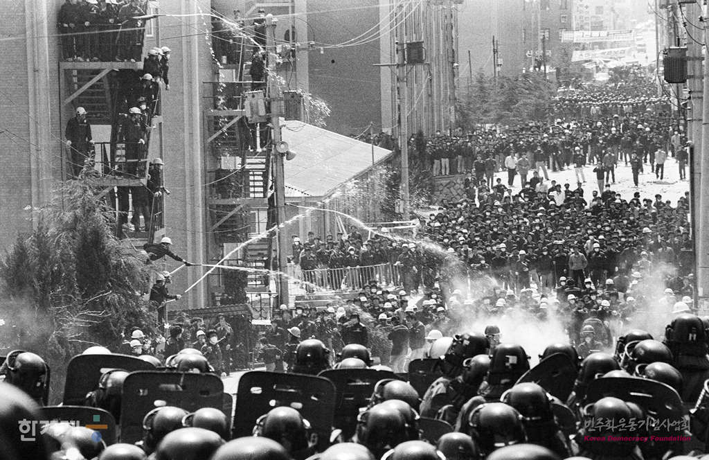 - 1989년 3월 30일 현대중공업 노동자들의 파업농성이 1백9일만인 30일 건국이래 최대병력과 장비를 동원한 경찰의 두 차례에 걸친 강제진압 작전에 의해 해산된 가운데 울산 오좌불숙소에서 농성을 하고 있는 현대중공업 노동자 2천여명을 경찰이 강제진압에 나서 노동자들을 연행하고 있다.
