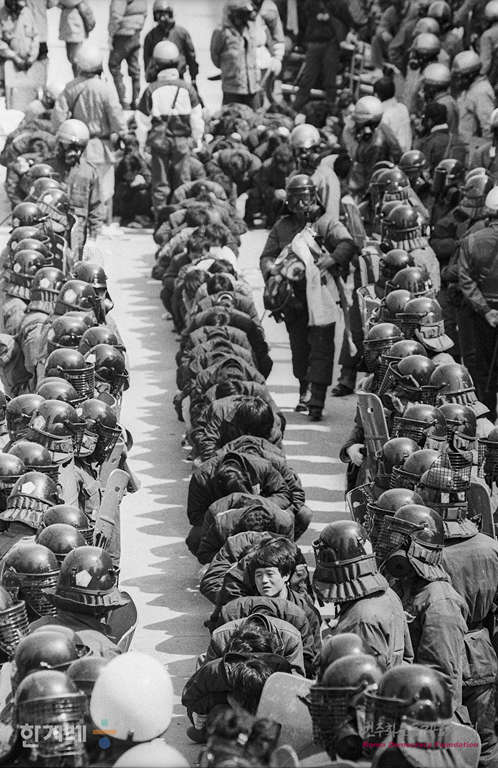 - 1989년 3월 30일 현대중공업 노동자들의 파업농성이 1백9일만인 30일 건국이래 최대병력과 장비를 동원한 경찰의 두 차례에 걸친 강제진압 작전에 의해 해산된 가운데 울산 오좌불숙소에서 농성을 하고 있는 현대중공업 노동자 2천여명을 경찰이 강제진압에 나서 노동자들을 연행하고 있다.