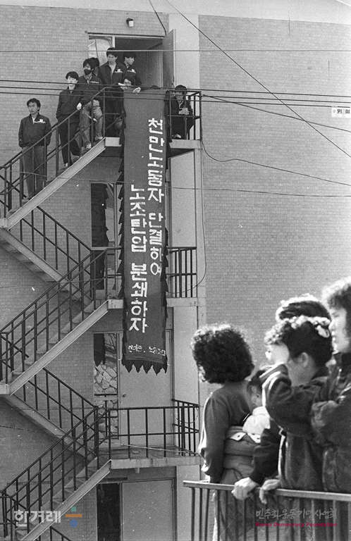- 1989년 3월 30일 현대중공업 노동자들의 파업농성이 1백9일만인 30일 건국이래 최대병력과 장비를 동원한 경찰의 두 차례에 걸친 강제진압 작전에 의해 해산된 가운데 울산 오좌불숙소에서 농성을 하고 있는 현대중공업 노동자 2천여명을 경찰이 강제진압에 나서 노동자들을 연행하고 있다.