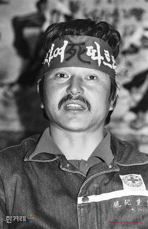 - 1989년 3월 29일 현대중공업 노동자들의 파업농성 1백9일만에 건국이래 최대병력과 장비를 동원한 경찰의 강제진압 작전이 예상되는 가운데 이원건 위원장을 비롯한 파업지도부는 끝가지 투쟁할 것을 다짐하고 있다