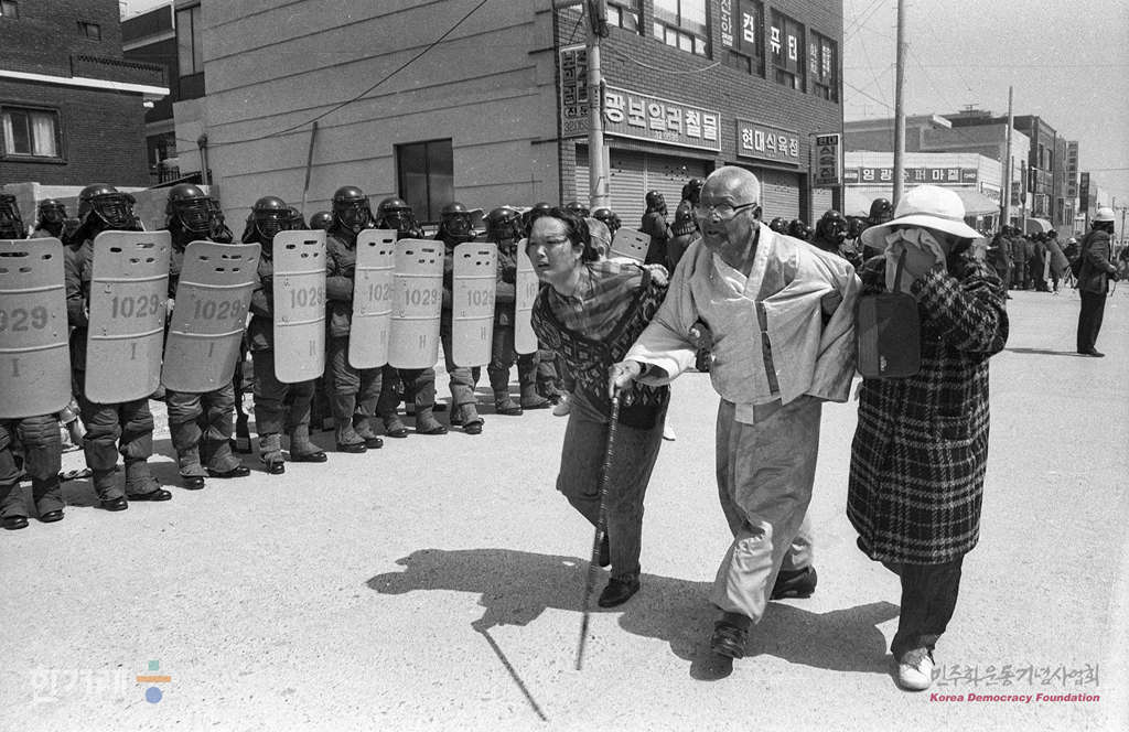 - 1989년 3월 30일 현대중공업 노동자들의 파업농성이 1백9일만인 30일 건국이래 최대병력과 장비를 동원한 경찰의 두 차례에 걸친 강제진압 작전에 의해 해산된 가운데 울산 오좌불숙소에서 농성을 하고 있는 현대중공업 노동자 2천여명을 경찰이 강제진압에 나서 노동자들을 연행하며 쏜 최루탄에 주민들이 괴로워하고 있다.