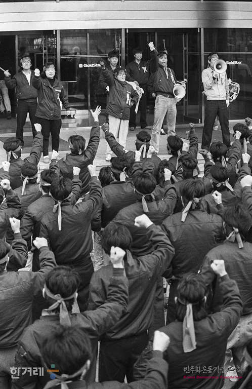 - 1989년 3월 31일 금성사 노동조합은 창원 1공장에서 임금 및 근로조건 개선을 위한 교섭을 요구하며 농성을 벌이고 있다.