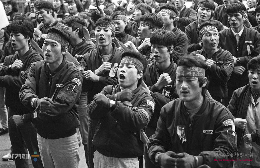 - 1989년 3월 31일 금성사 노동조합은 창원 1공장에서 임금 및 근로조건 개선을 위한 교섭을 요구하며 농성을 벌이고 있다.