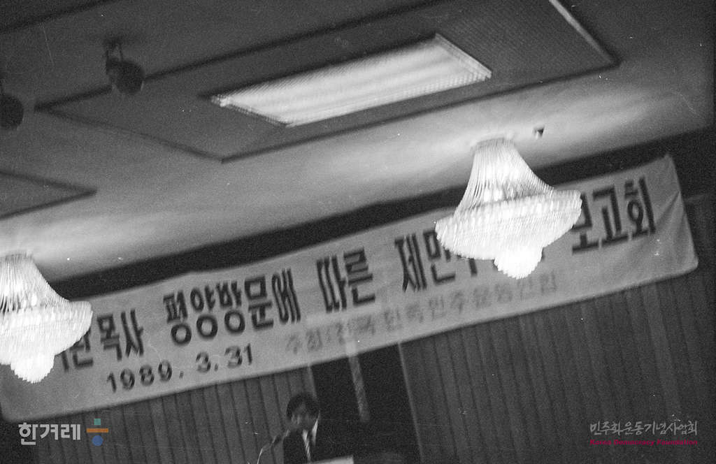 - 1989년 3월 31일 전민련을 비롯한 전대협 전교협 등 10개 재야운동단체는 서울 기독교회관에서 열린 문익환성생 평양방문에 따른 제민주단체 보고회를 갖고 문목사의 방북을 지지하고 환영대회를 개최키로 결의하고 있다.