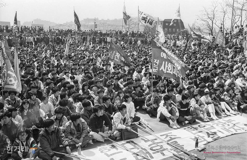 - 1989년 4월 2일 오후 3시 재야인사 노동자 학생 등 1천여명은 서울 동국대 만해광장에서 열린 현대중공업 강제진압 규탄대회를 갖고 정주영 현대그룹 명예회장 허수아비 화형식을 마친 뒤 결력한 거리시위를 벌였다.