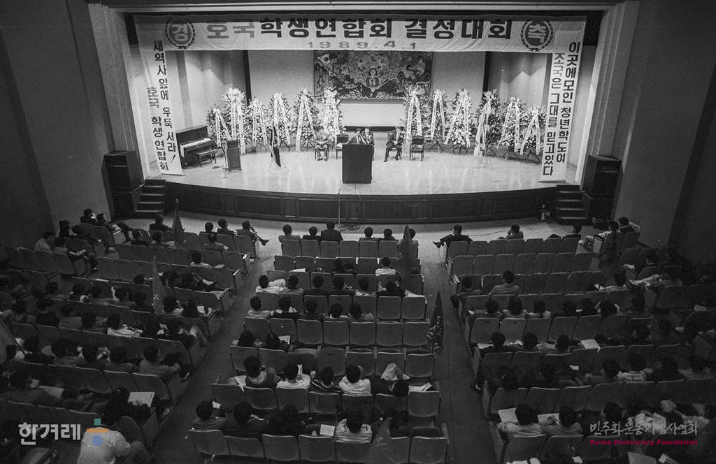 - 1989년 4월 1일 우리나라 대표적인 우익행동단체인 호국청년연합회가 서울 송파구 잠실동 교통회관에서 창립대회를 갖고 있다 이날 통일민주당 지구당 창당폭력 방해사건과 관련해 수배중인 이승환 호국청년연합회 의장도 참석해 격려사를 한뒤 잠적했다.