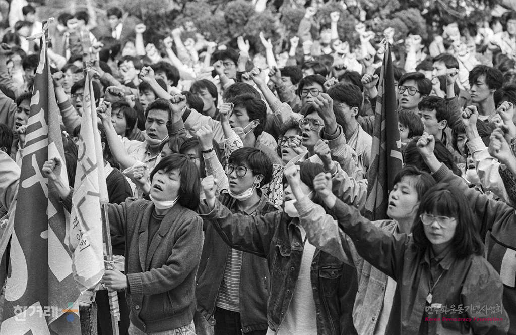 - 1989년 4월 4일 서총련 소속 대학생 1천여명이 연세대 민주광장에서 문익환목사 방북지지, 환영 및 사법처리 반대결의대회를 갖고 있다.